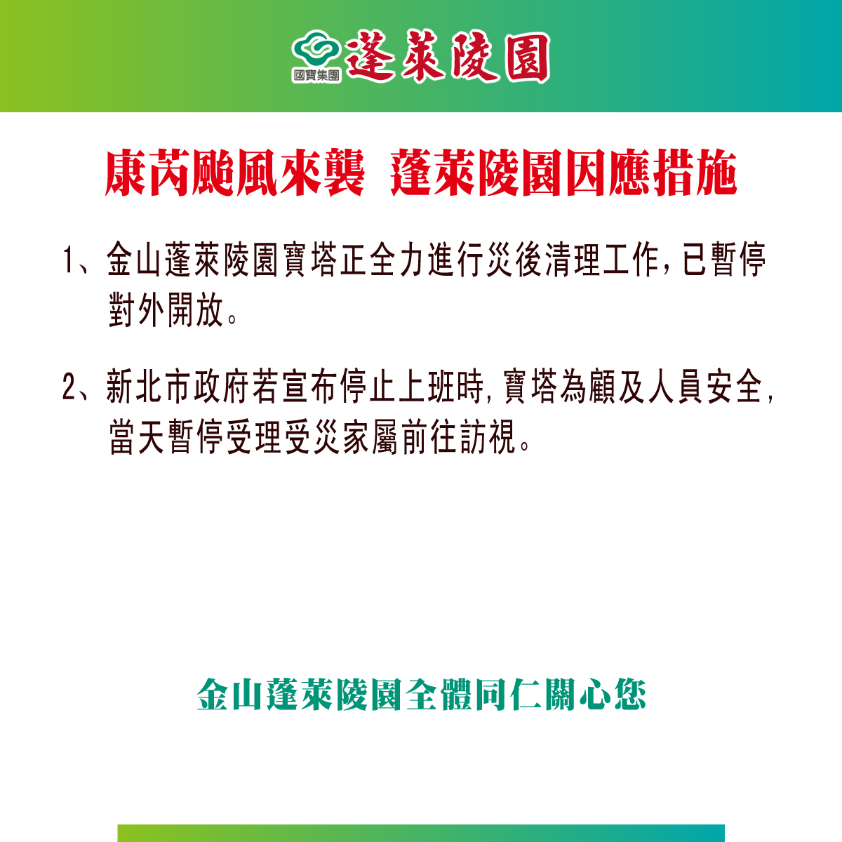 【生命】金山蓬萊陵園 | 康芮颱風應變措施公告