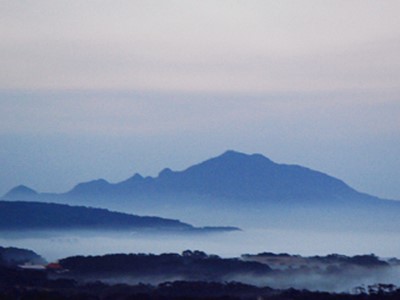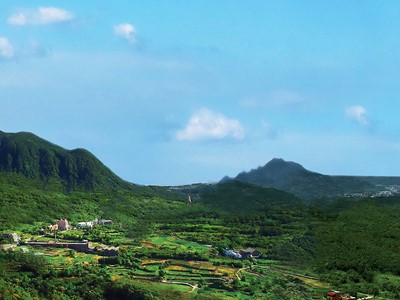 左前為大屯群山,山形宛如象群拱拜於下,更顯尊貴地位渾然天成。