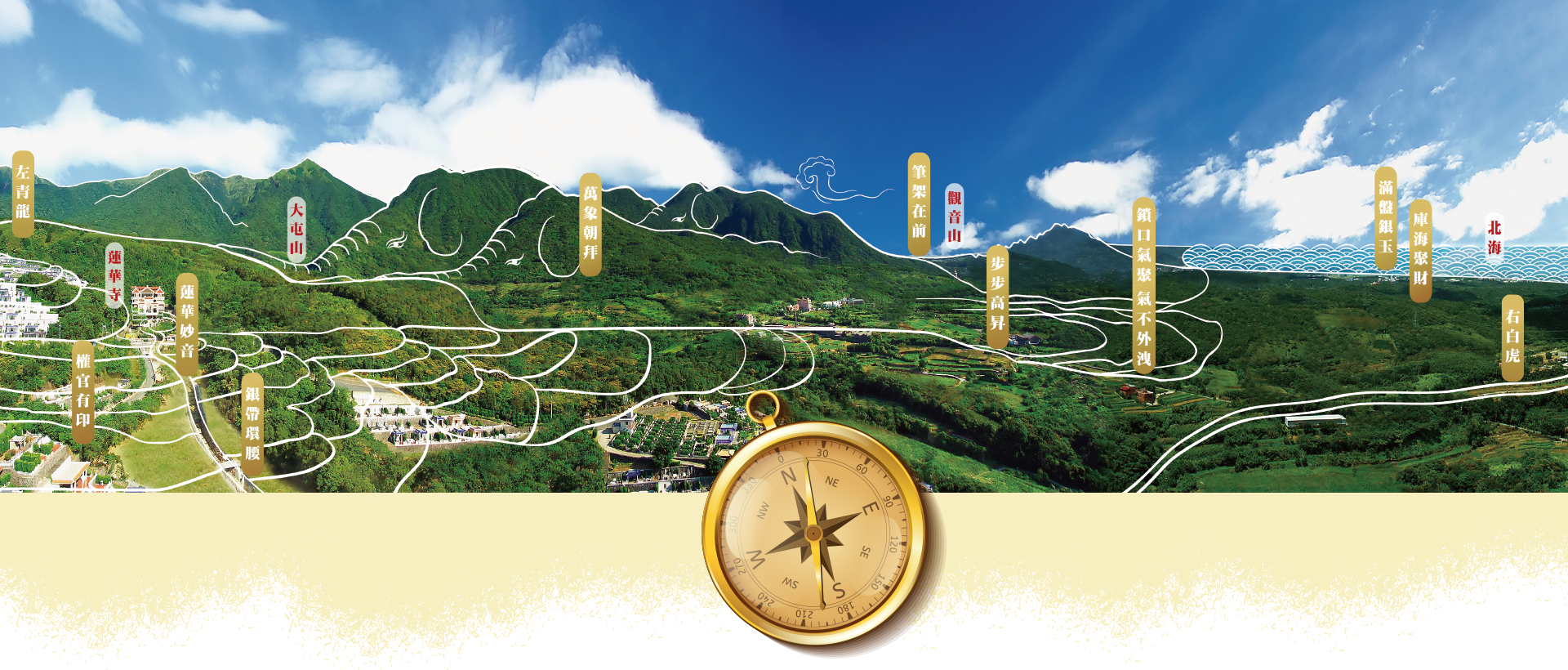 北海福座左有大屯山脈綿延至右入海,符合風水福地的左青龍高、右白虎低的勘輿條件。