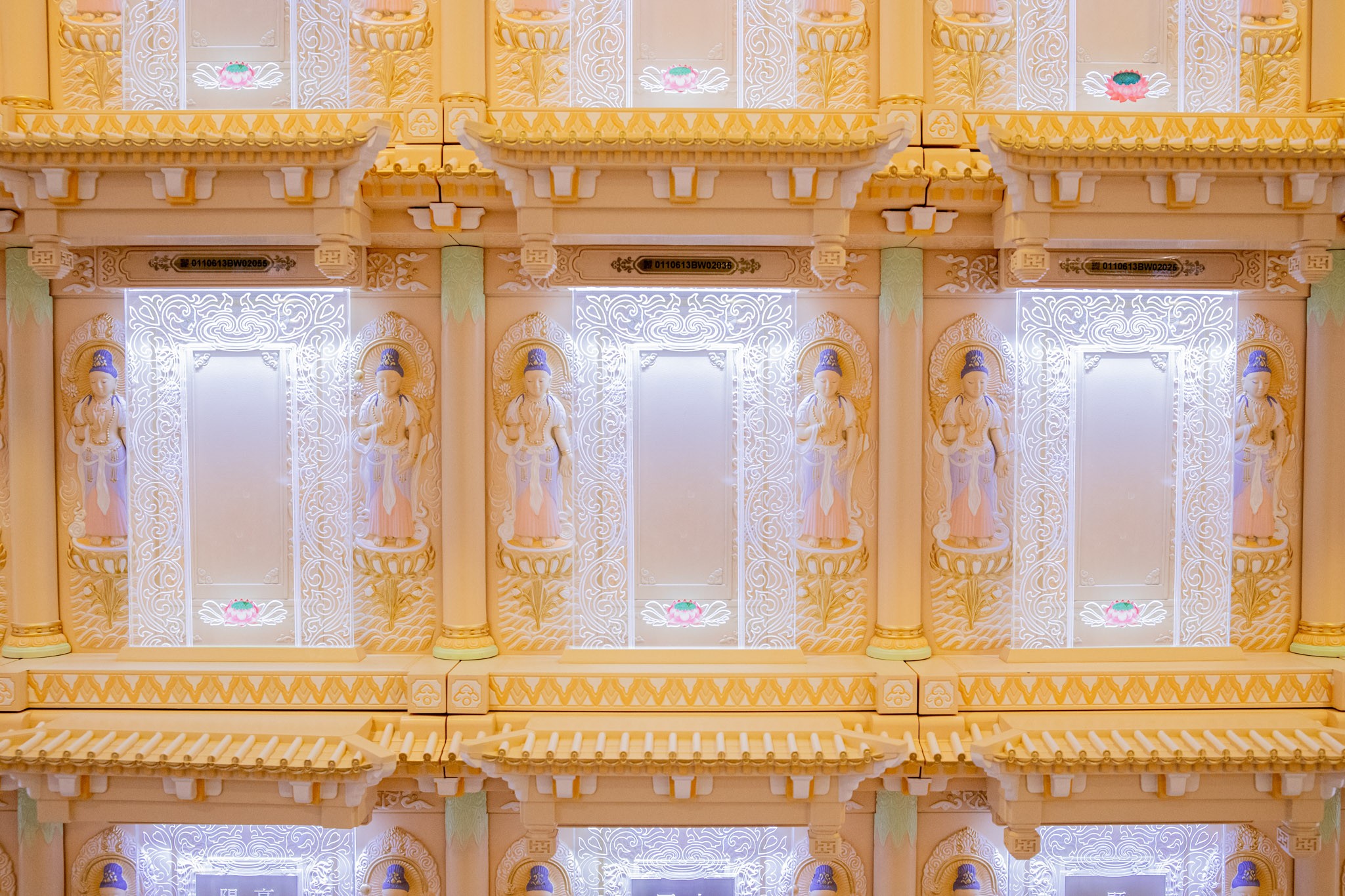 塔位面板上的佛像與裝置飾物,都是由工作人員一筆一繪,盡心盡力彩繪而上。