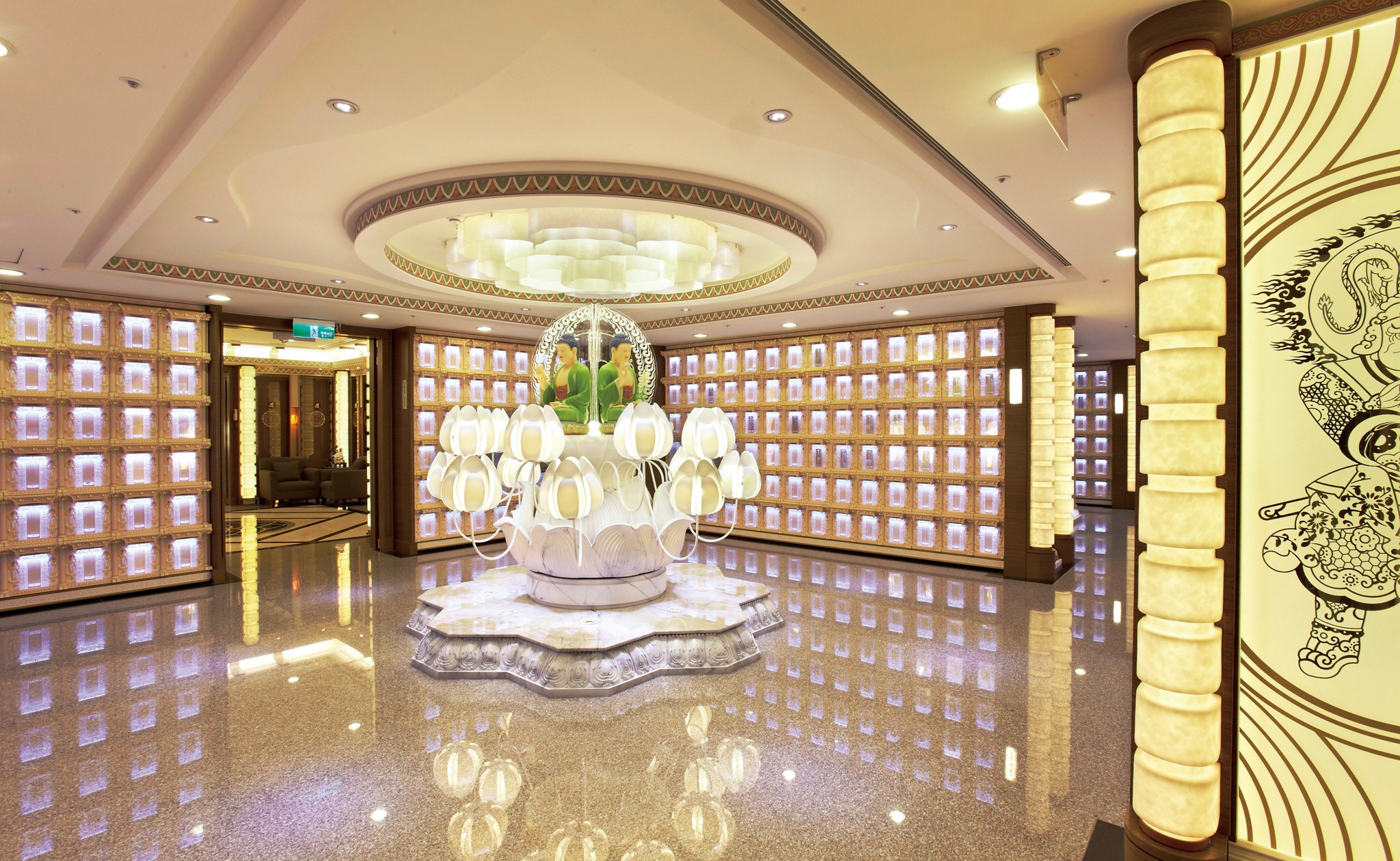 參考「太和殿」之設計,以帝王之居為理念,並融入「藥師琉璃光佛」於其中,透過LED燈與大量的琉璃裝飾,使塔位呈現潔淨澄透的瑰麗氣派,使先人享有如同住在皇殿般的無上尊榮。